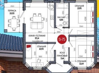 3 спальни, большая кухня-гостинная с терассой, мансардный этаж 40 кв м свободной планировки